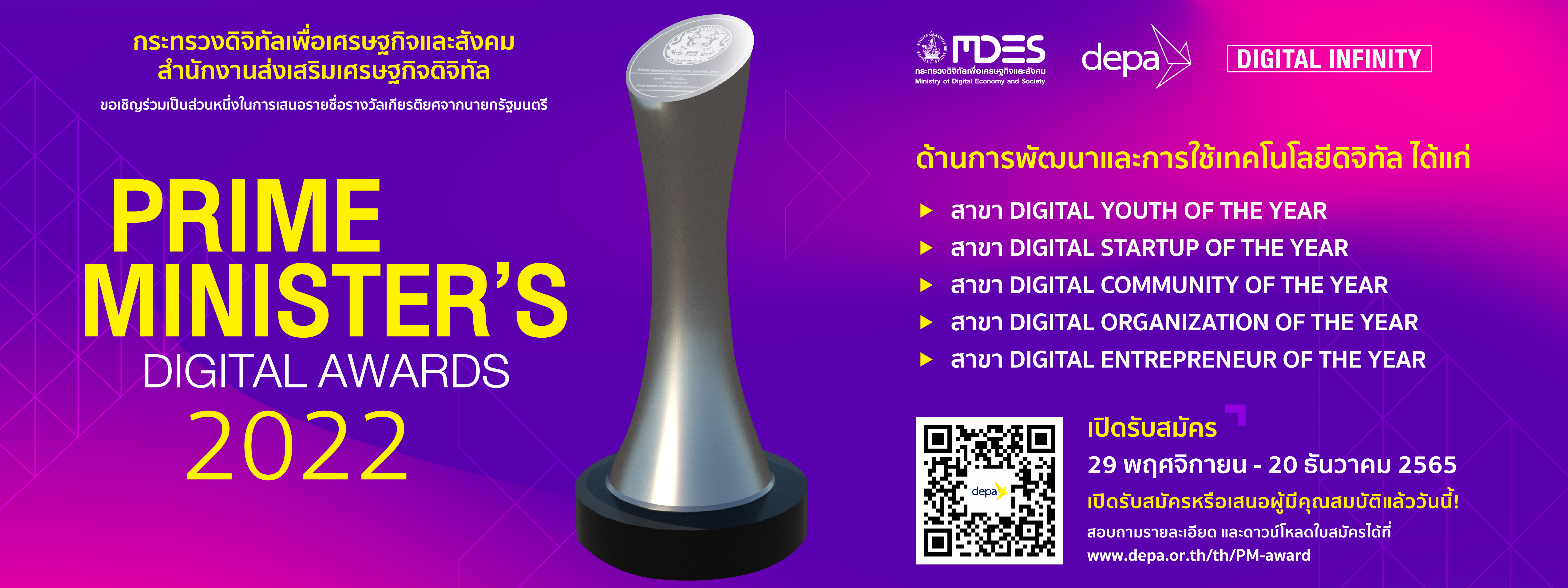 2022 รางวัลเกียรติยศจากนายกรัฐมนตรี (Prime Minister’s Digital Awards) คือ รางวัลเชิดชูเกียรติที่มอบให้ผู้ที่มีผลงานดีเด่นด้านเทคโนโลยีและนวัตกรรมดิจิทัลของประเทศไทย ประจำปี 2565 ในด้านต่าง ๆ เพื่อเป็นการสร้างความตระหนัก แรงจูงใจให้ประชาชนเห็นถึงศักยภาพและความสำเร็จ สามารถเป็นแบบอย่างและแรงบันดาลใจในการพัฒนาตนเอง ทั้งในระดับปัจเจกบุคคล ชุมชน และองค์กร อันจะเป็นการเพิ่มขีดความสามารถของประเทศไทย รองรับการเข้าสู่เศรษฐกิจและสังคมดิจิทัลได้อย่างยั่งยืน โดยรางวัลเกียรติยศ PM’s Digital Awards 2022 แบ่งออกเป็น 5 ประเภท ประกอบด้วย