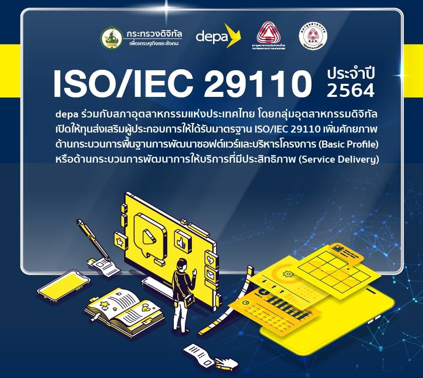 สำนักงานส่งเสริมเศรษฐกิจดิจิทัล ร่วมกับสภาอุตสาหกรรมแห่งประเทศไทย โดยกลุ่มอุตสาหกรรมดิจิทัล เปิดรับสมัครผู้ประกอบการที่สนใจยกระดับองค์กรด้วยมาตรฐานสากล ISO/IEC 29110 เพิ่มศักยภาพด้านกระบวนการพื้นฐานการพัฒนาซอฟต์แวร์และบริหารโครงการ (Basic Profile) หรือด้านกระบวนการพัฒนาการให้บริการที่มีประสิทธิภาพ (Service Delivery)