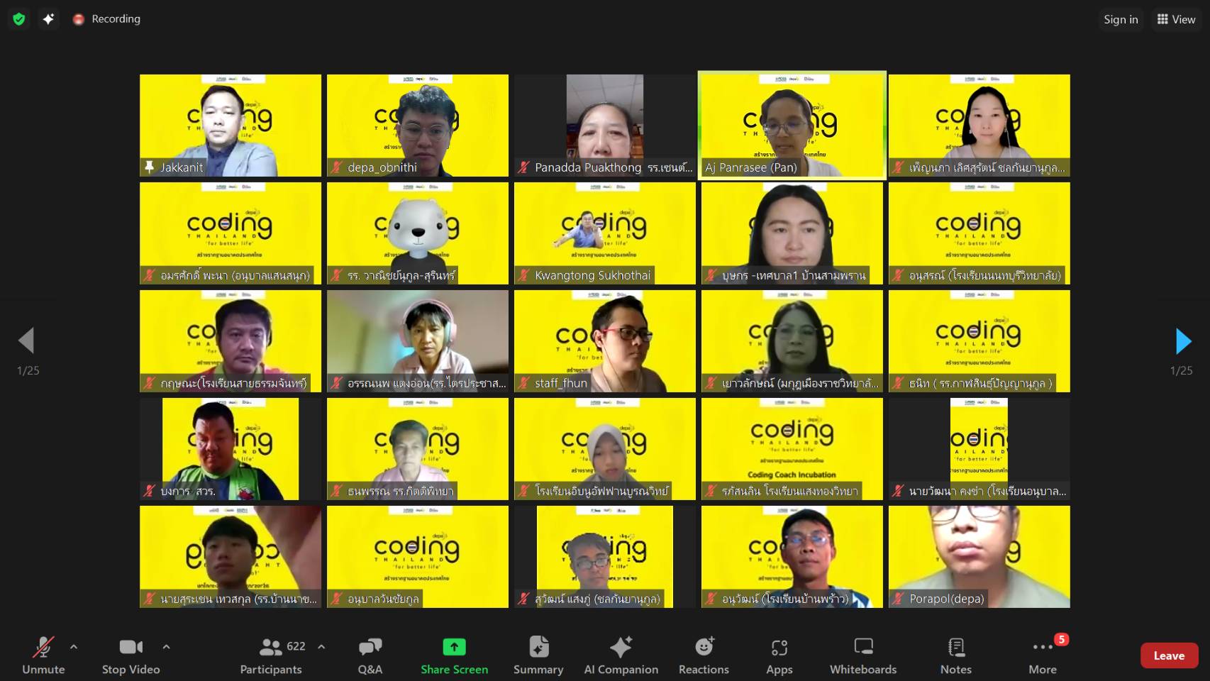 กิจกรรม Coding Coach Incubation โดย รศ.ดร.ปัณรสี ฤทธิประวัติ เป็นวิทยากรถ่ายทอดทักษะโค้ดดิ้งให้แก่ครูและบุคลากรทางการศึกษา แนะนำโปรแกรมพื้นฐานต่าง ๆ ในหลักสูตรของโครงการฯ อบรมหลักสูตรต่อยอดโค้ดดิ้งสู่ปัญญาประดิษฐ์ (AI) เบื้องต้น และปัญญาประดิษฐ์สำหรับการประมวลผลภาพเบื้องต้น