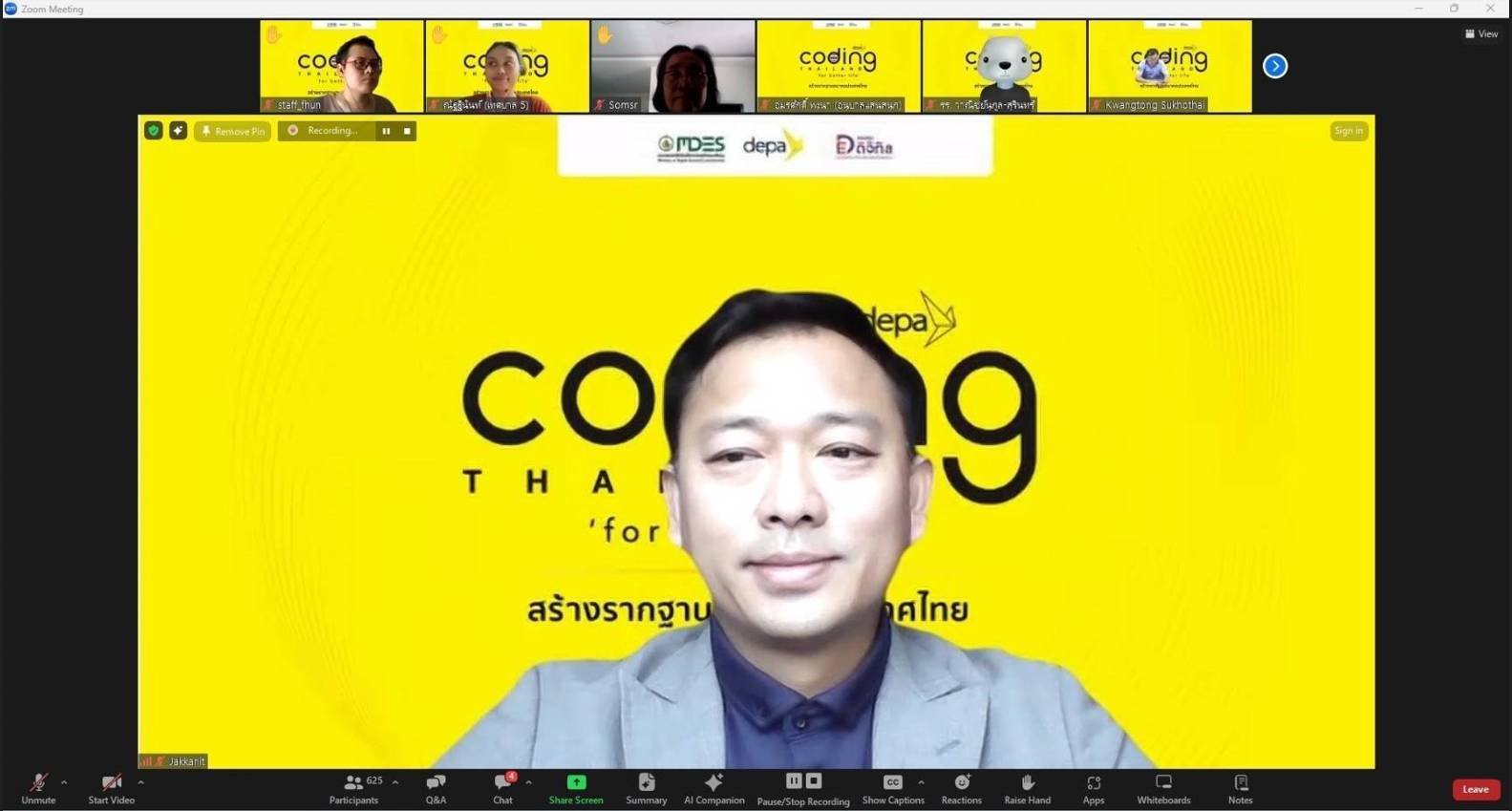 27-28 เมษายน 2567, ระบบออนไลน์ : สำนักงานส่งเสริมเศรษฐกิจดิจิทัล (depa) โดย ดร.จักกนิตต์ คณานุรักษ์ ผู้อำนวยการฝ่ายส่งเสริมการพัฒนากำลังคนดิจิทัล ต้อนรับเหล่าคุณครูที่ผ่านการคัดเลือกรอบที่ 1 และ 2 จากสถานศึกษา 633 แห่ง ทั่วประเทศ เข้าสู่กิจกรรม Coding Coach Incubation รอบที่ 2 โดยกิจกรรมนี้จะเป็นการเตรียมความพร้อมให้แก่คุณครูที่เข้าร่วมโครงการเรียนโคดดิ้งพัฒนาคุณภาพชีวิต (Coding for Better Life) เพิ่มทักษะการถ่ายทอดความรู้ เสริมด้วยหลักสูตรและเครื่องมือการเรียนรู้ด้านโค้ดดิ้ง โดยคุณครูที่ผ่านการอบรมสามารถสร้างทีม (ครู 1 คน นักเรียน 3 คน) มาร่วมแข่งขันในกิจกรรม Coding Bootcamp และ Coding War เพื่อชิงรางวัลมูลค่ารวมกว่า 2.4 ล้านบาท