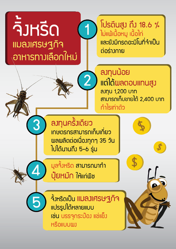 ภาพที่ 4 ประโยชน์ของจิ้งหรีด แมลงเศรษฐกิจ อาหารทางเลือกใหม่ (ที่มา: https://www.khaosod.co.th/monitor-news/news_4171438)