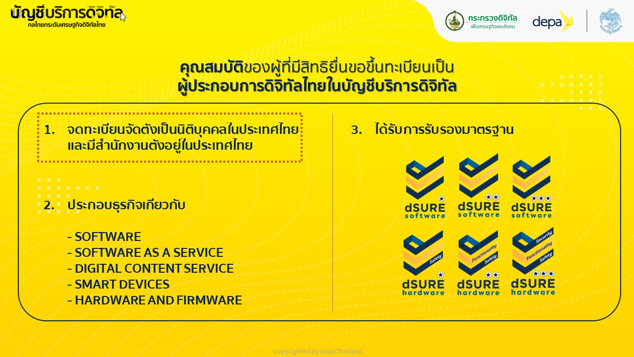 การขึ้นทะเบียนผู้ประกอบการบัญชีบริการดิจิทัล (Thailand Digital Catalog)